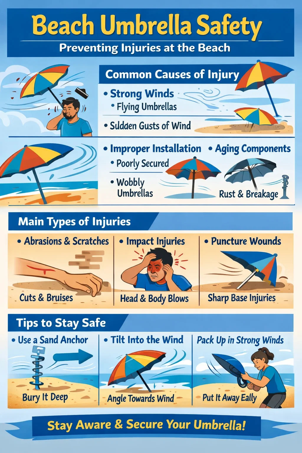 Hoci ísť na pláž je určené na relaxáciu, plážové slnečníky , ak nie je správne zabezpečený, môže skutočne predstavovať potenciálne bezpečnostné riziko. Každý rok sa veľa ľudí zraní, keď si užívajú slnečné lúče.