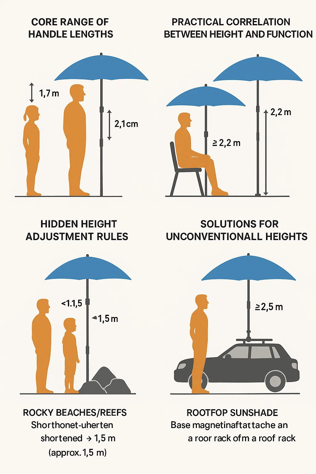 Nasleduje praktická analýza plážový dáždnik výšky, založené na bežných scenároch používania a zásady ergonomického dizajnu: