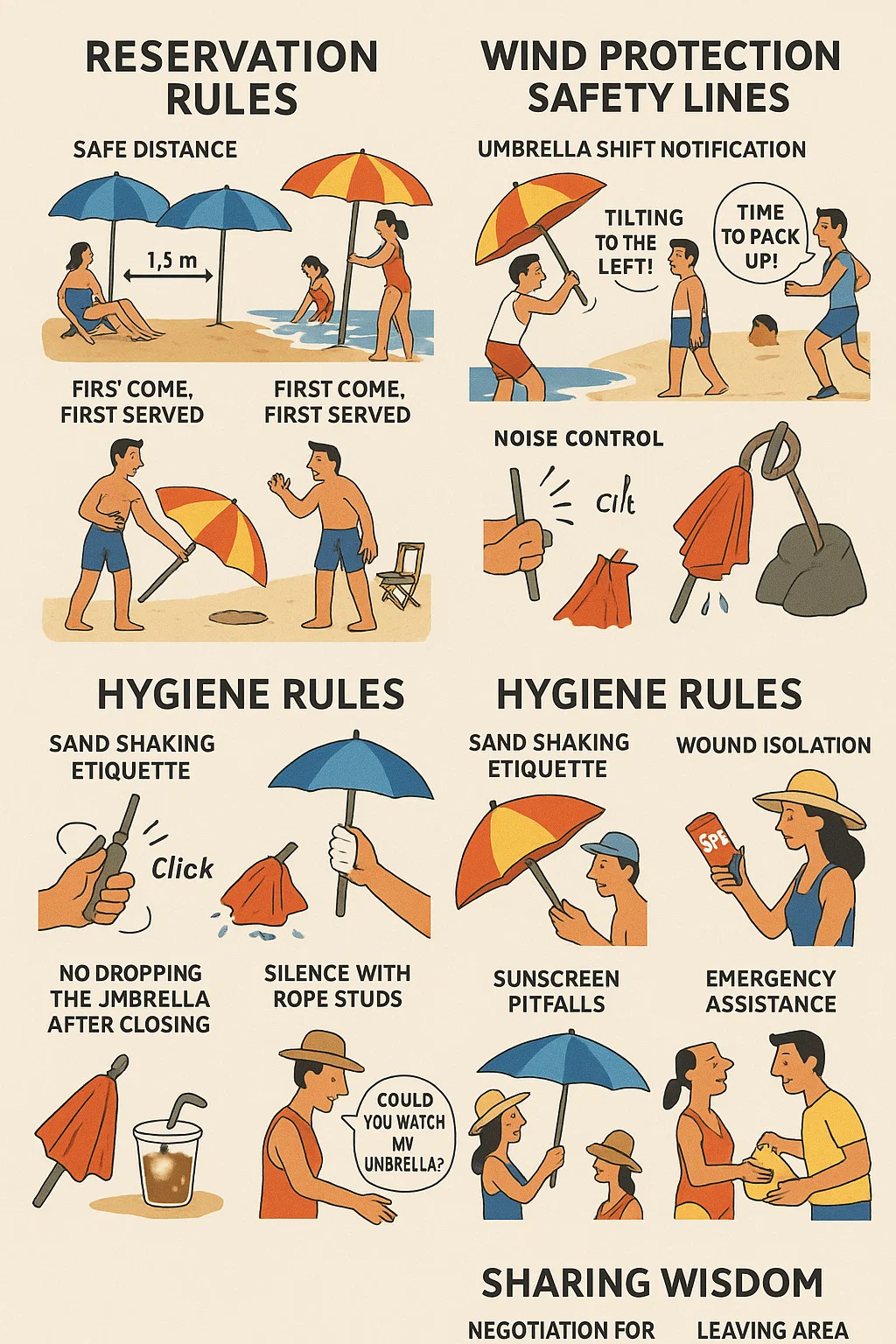 Tu je niekoľko bežných nevyslovených pravidiel používania plážové slnečníky :